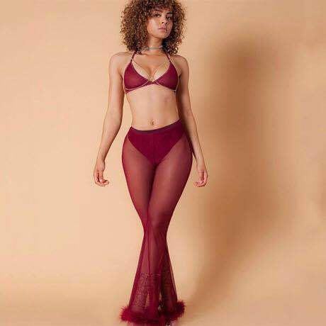 Mesh Capris Sexy New Mesh Trousers High Waist Slim Perspective Orange Fluffy Flare Pants Holiday Streetwear Pantalon Women Pant