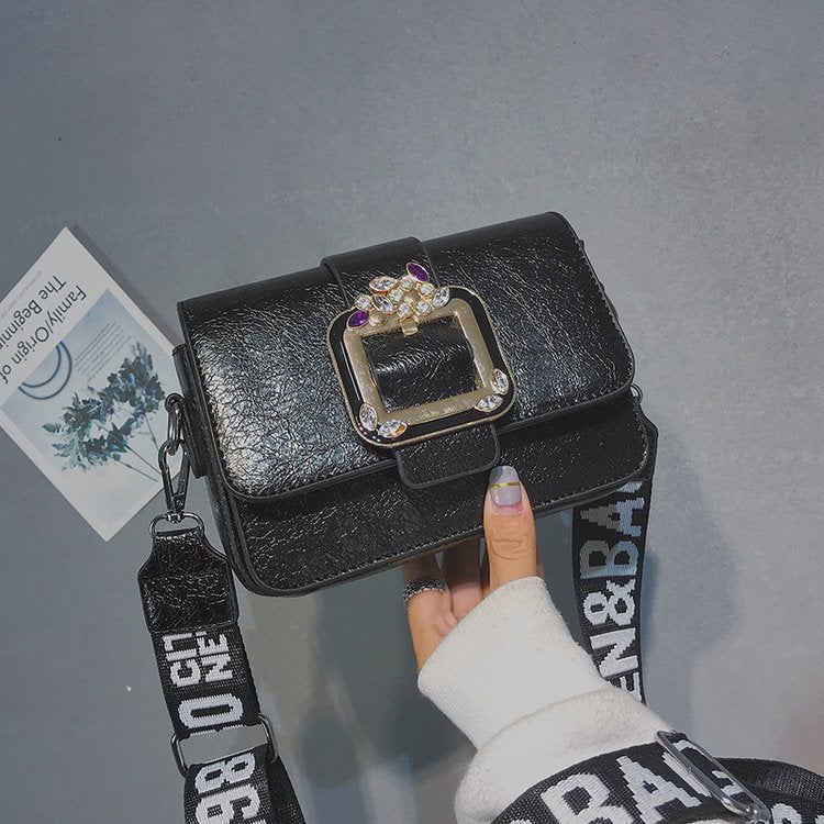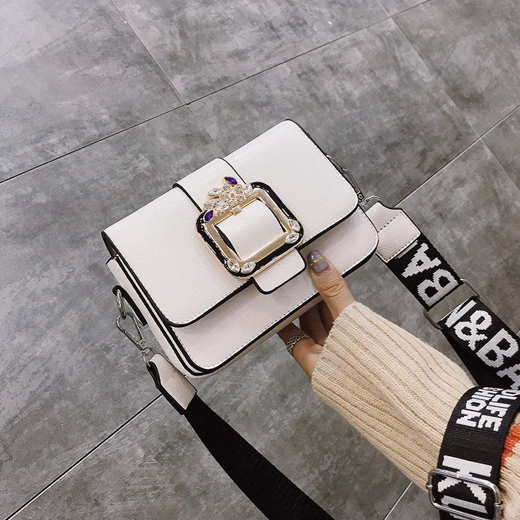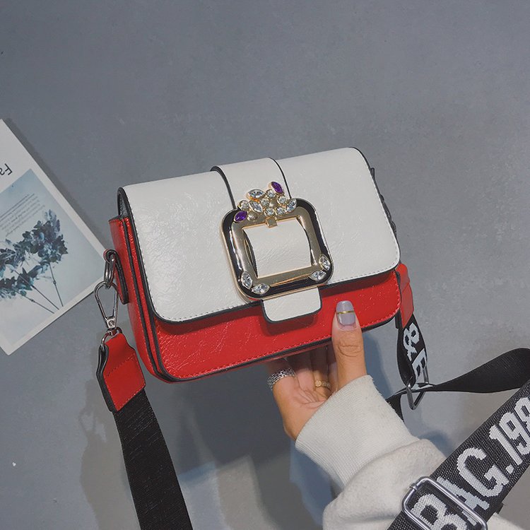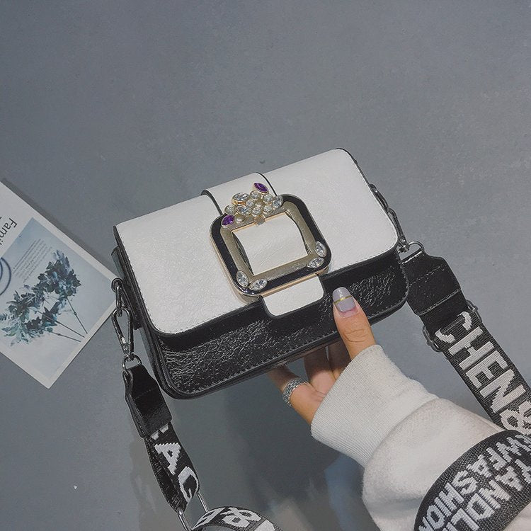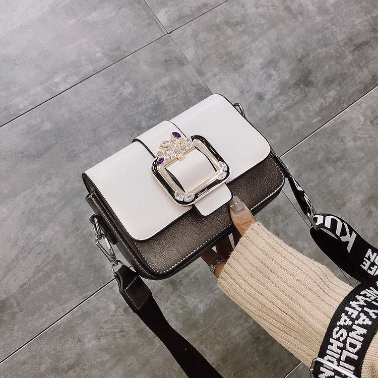 Cotton and Leather Women Box Bag Buckle Strap Crossbody Bag