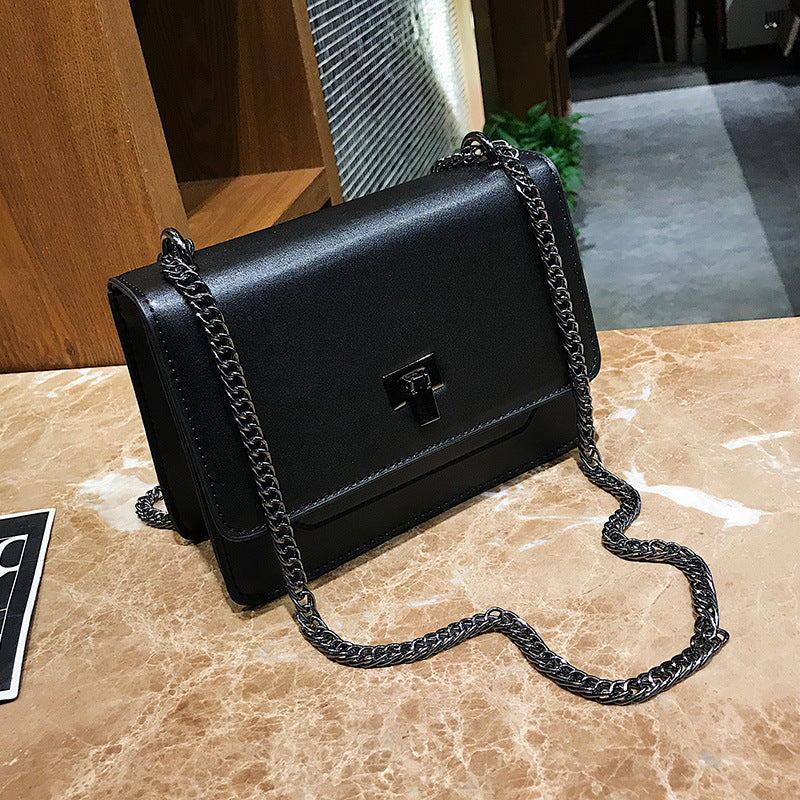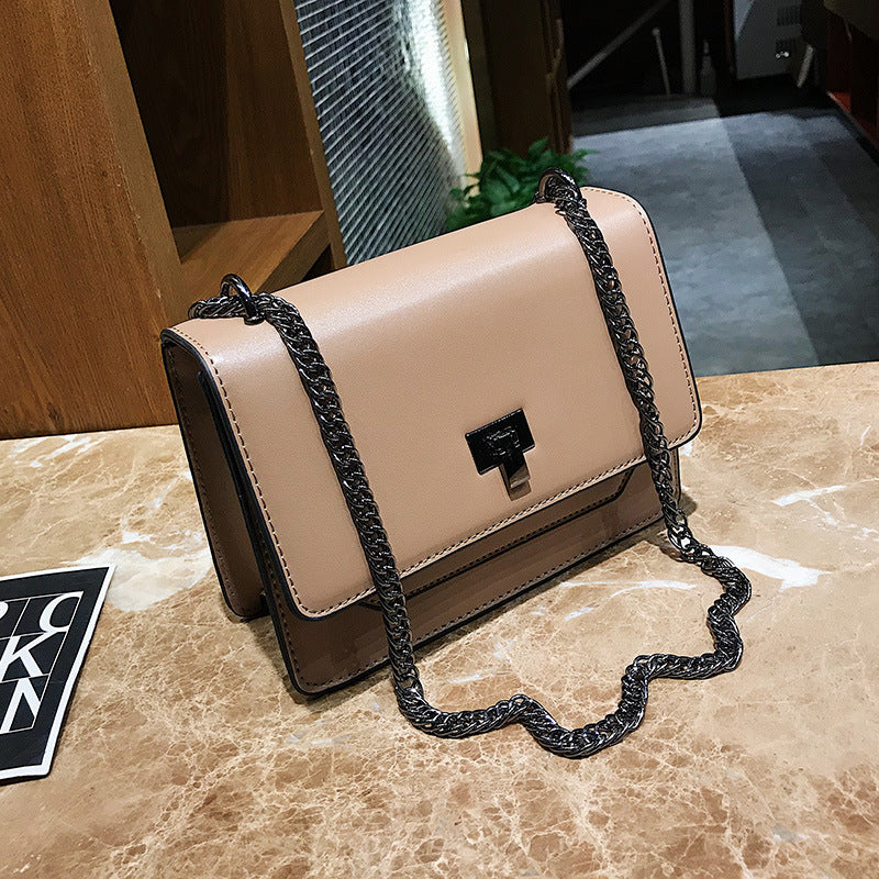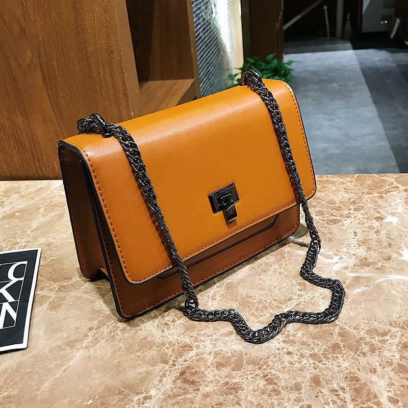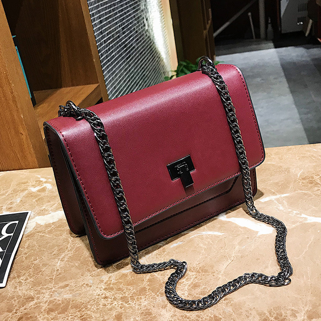 Smooth Synthetic Leather Crossbody Box Bag with Metal chain