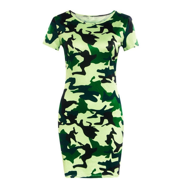 2019 New Summer Fashion Women Sexy Tank Dress Slim Casual Camouflage Military O-Neck Print Splice Empire Mini Dresses Vestidos