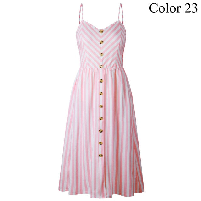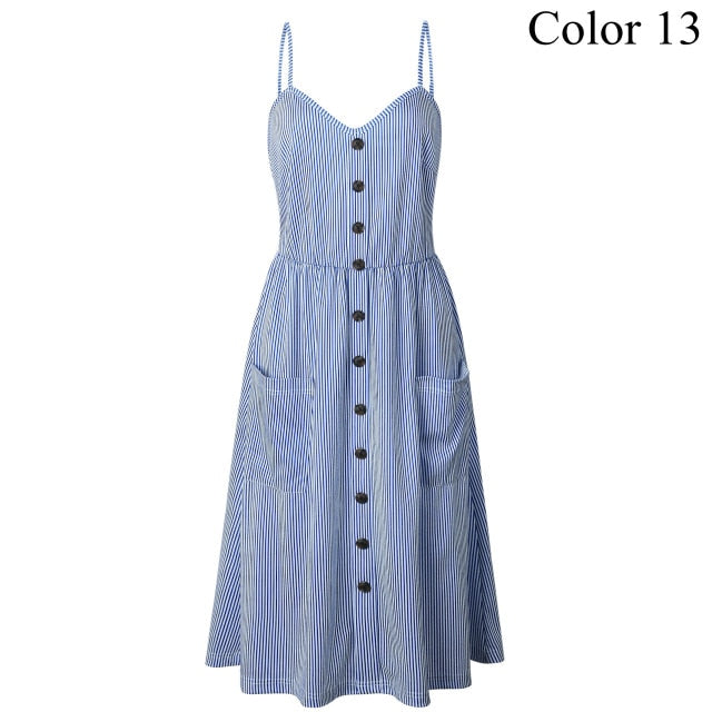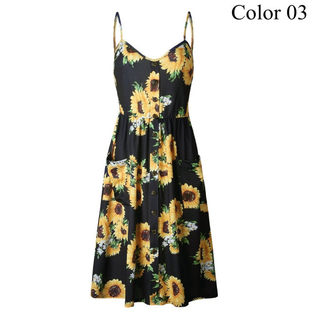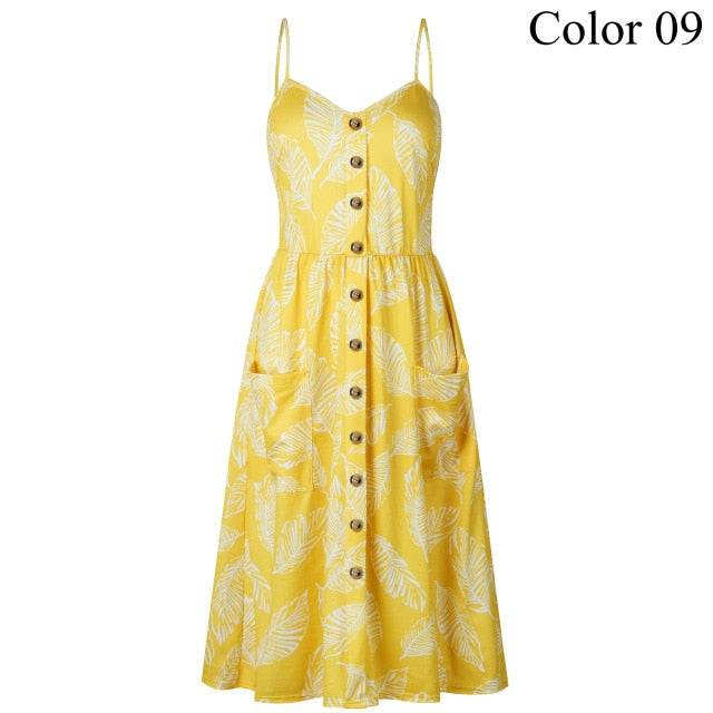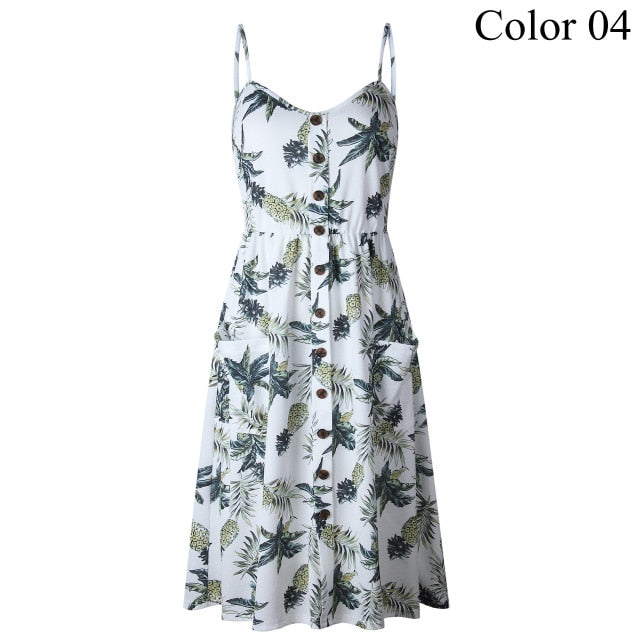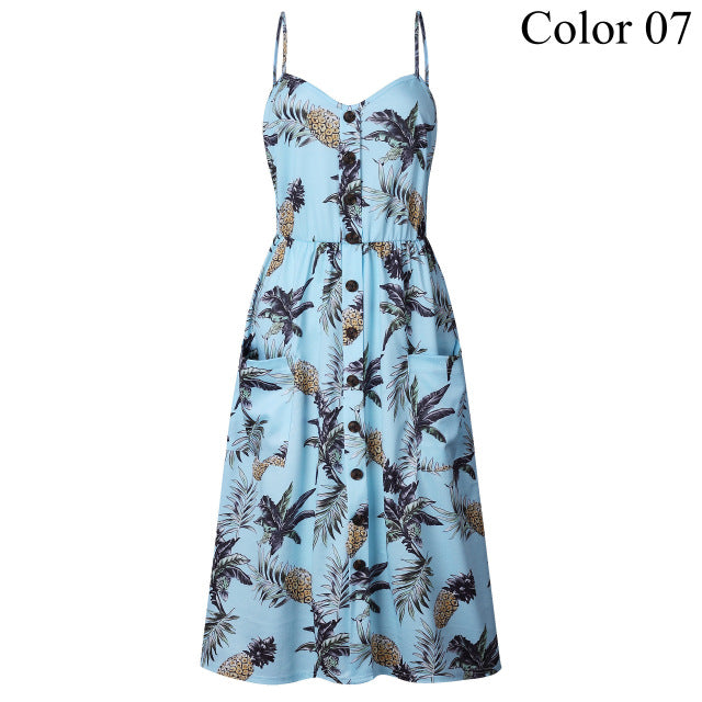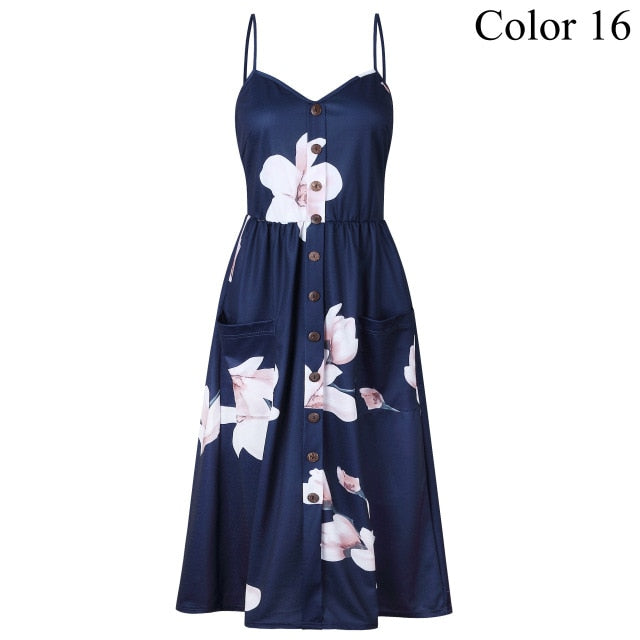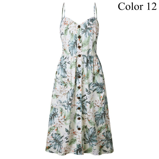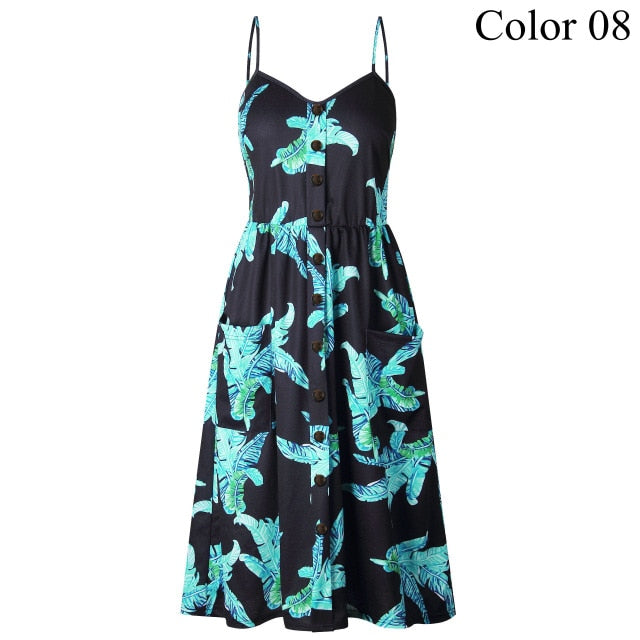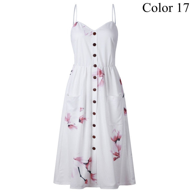 2019 Summer Women Button Decorated Print Dress Off-shoulder Party Beach Sundress Boho Spaghetti Long Dresses Plus Size FICUSRONG